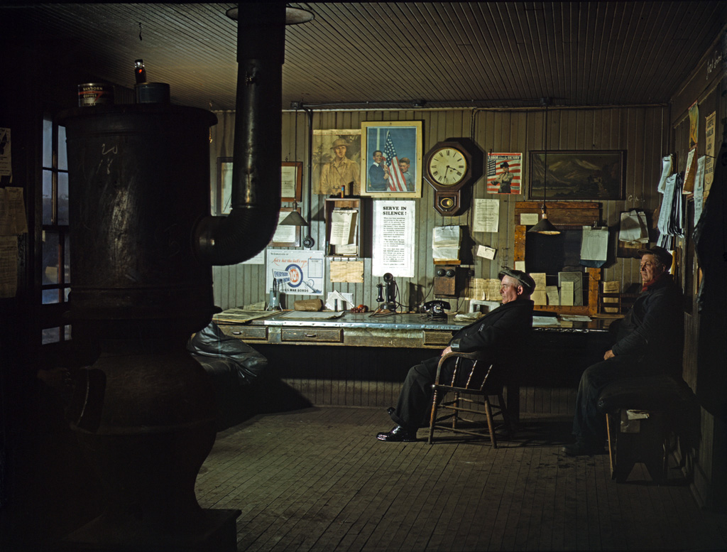 It’s a cold winter’s afternoon in December of 1942. Though it’s only 3:32 p.m., it looks pretty dark and dreary outside. We’re in the Yardmaster’s office located in the Chicago and North Western’s North Proviso receiving yard in Chicago, Illinois. It’s obvious we’re well into the war effort with all the photos and posters on the wall. There are a couple telephones: a typical “split style” desk phone (modified to hang the desk phone back on the wall), and one of those even newer desk phones at the Yardmaster’s right hand. The old stove is keeping those coffee cans on it’s top warm and dry.