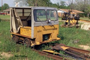 On a sunny Sunday, April 10th of 1988, Ron Findley and I were spending the day trackside, traveling from place to place. We eventually found our way up to Wanilla, Mississippi, where a railroad crossing exists. And there we found parked an old GM&O speeder (a motorcar). It’s probably safe to say that it was unused, but remained in fairly good condition based on our inspection of the car. Ron recorded this view of the machine. Great find on that day!