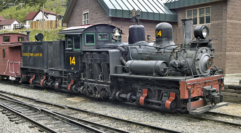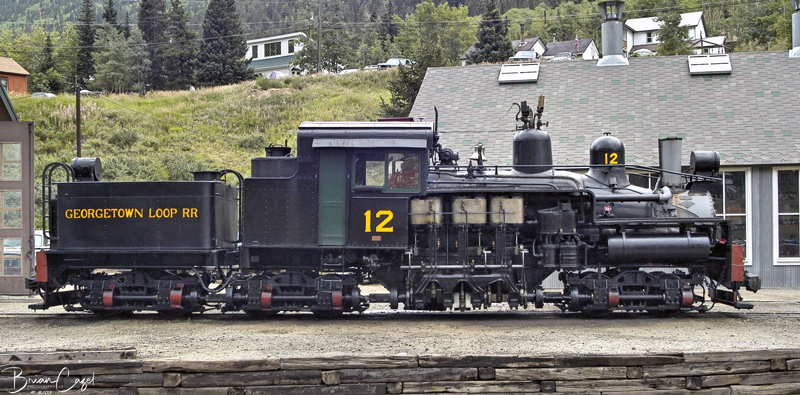 Last week I posted a photograph taken during my trip to the Georgetown Loop Railroad, one of just a few slides that had been spared in the Great Flood of 2016. I was recalling that there were three of these 3-foot narrow gauge Shays operating on the line at that time. So I dug around a bit and found photographs of all three of these machines, each recorded by Brian Cazel. Unfortunately none of these locomotives are still operating on the line, their last service there occurring in 2004.