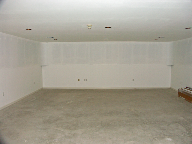 << Previous | Here's the same view from the entrance after priming and painting. The ceiling and lower portion of the walls are complete. The upper part of the walls are primed and ready for the backdrop painting. I plan to install the layout lighting next, them will paint the blue base for the backdrop. | Next >> |