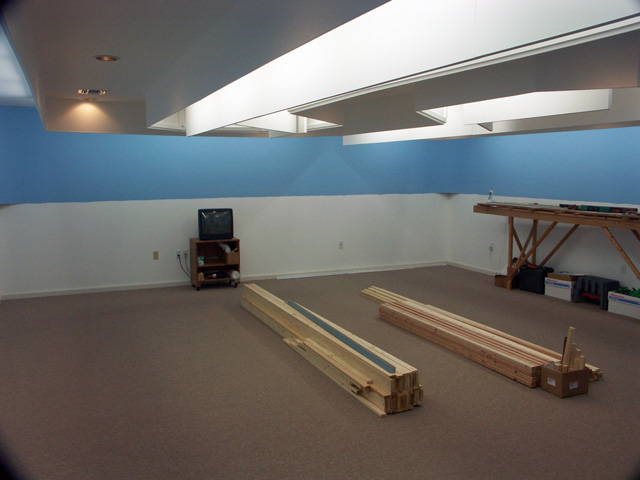 view blocks in place. Again back to our usual starting point, here is a look at the completed valence with the view blocks installed (the panel hanging down the middle of the peninsula). The view blocks are a bit deeper than the valence; necessitated by the depth of the fluorescent lamps on the far side. |