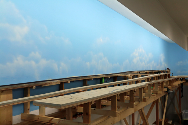 << Previous | Here's a view from the other end. The broad area will have the mainline, a passing siding and an industrial spur. We're at roughly the mid-point of Whitcomb there at the end of the sub-roadbed. The Spencer mainline is at the mid level and it's easy to see it's descent as it passes through Whitcomb. All of the sub-roadbed in this photograph is recycled benchwork from a layout that I dismantled back in the early 90s. I'm pleased that it's found a new home. | Next >> |