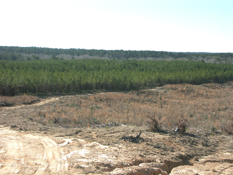 | << Previous | Panning even further left, a recently replanted area is seen next to this section. It won't take many years before this stand is ready to harvest. The emphasis is changing though from older, mature trees to be used for lumber, to smaller (and younger) trees to be used primarily for pulp. | Next >> |