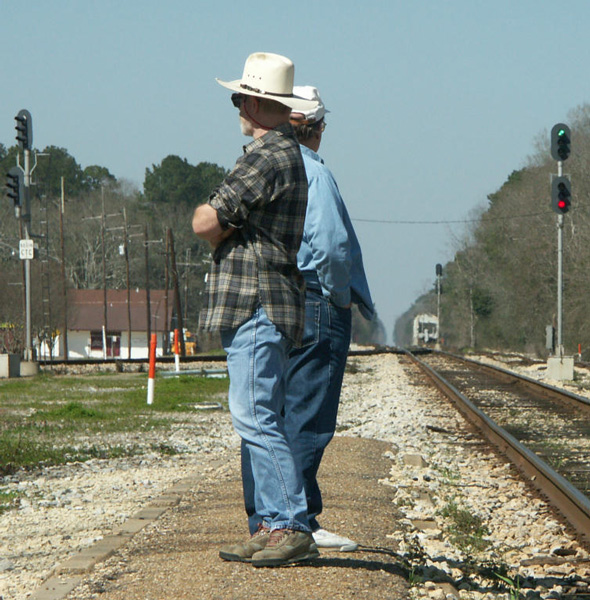 Ever Vigilant - Tom (left) and Wayne on watch...nothing shall slip by these wary railfans!