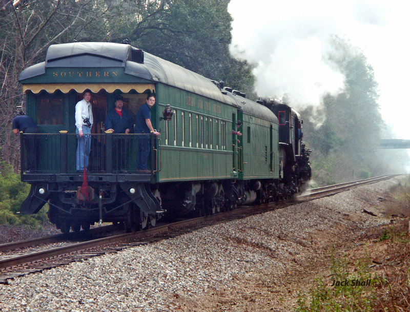 A nice open end observation car follows up the rear of the train, with kerosene marker lamps resplendently displayed in the traditional fashion.